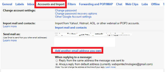 And you will see the below settings panel come up. Please click on the tab labeled "Accounts and Import" and you'll see this page below. Click on "Add a POP3 mail account you own".
